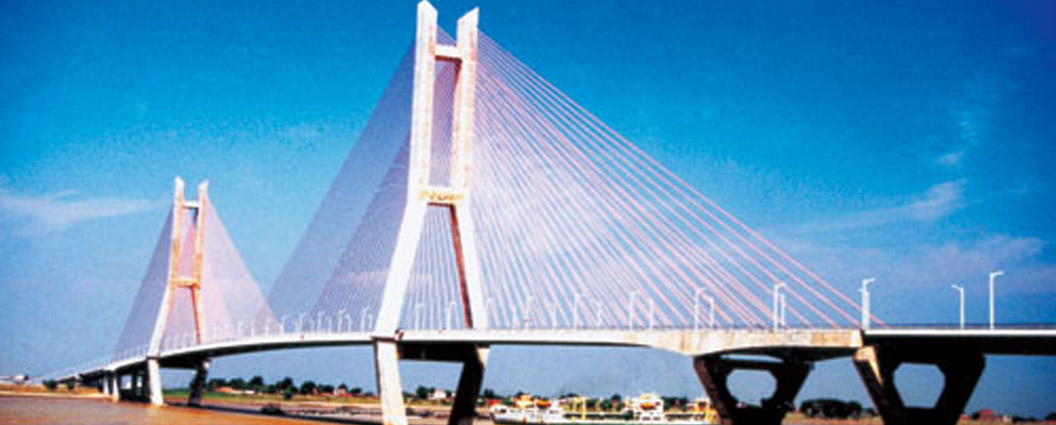 湖北鄂黃長江大橋 全長3245米,主橋長1290米,主跨480米,主塔高172.3米,五跨連續(xù)雙塔雙索面預(yù)應(yīng)力砼斜拉橋,其主跨居同期同類橋梁亞洲第二、世界第三,2002年9月建成通車。其施工創(chuàng)造了一年完...