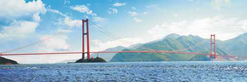 全長5452米,主橋長2588米,主跨1650米,兩跨連續(xù)鋼箱懸索橋,2009年12月建成通車,主跨居世界第二、國內第一。