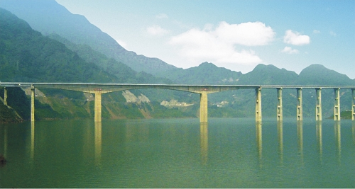 全長(zhǎng)1440.22米,主跨220米,預(yù)應(yīng)力砼連續(xù)鋼構(gòu)橋,2006年10月建成。
