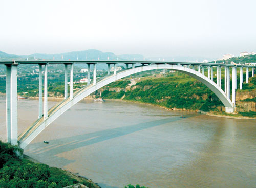 全長856.12米,主跨420米,勁性骨架鋼管砼上承式拱橋,主跨同期同類橋梁世界第一,1997年7月建成通車。先后獲得四川省天府杯金獎,國家科技進不一等獎,國家優(yōu)質(zhì)工程獎,詹天佑土木工程大獎和“全國十佳橋梁”等榮譽。